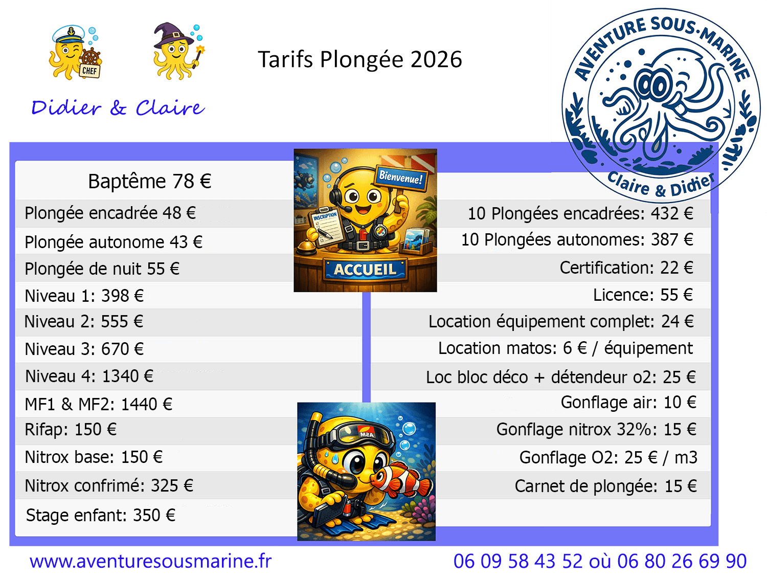 • Carnet de plongée 15 €